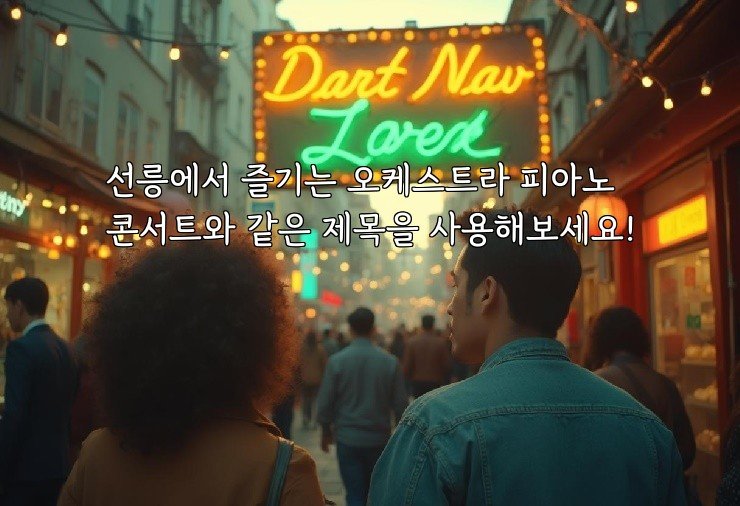 선릉에서 즐기는 오케스트라 피아노 콘서트와 같은 제목을 사용해보세요! 더 읽기"